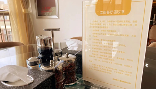 全集團(tuán)要積極傳承中華民族優(yōu)秀飲食文化和尊重勞動(dòng)、珍惜糧食、勤儉節(jié)約的傳統(tǒng)美德,大力弘揚(yáng)勤儉節(jié)約、艱苦奮斗的崇高精神,積極倡導(dǎo)“文明就餐,杜絕浪費(fèi)”的用餐文化,營造“節(jié)約光榮、浪費(fèi)可恥”的良好氛圍。