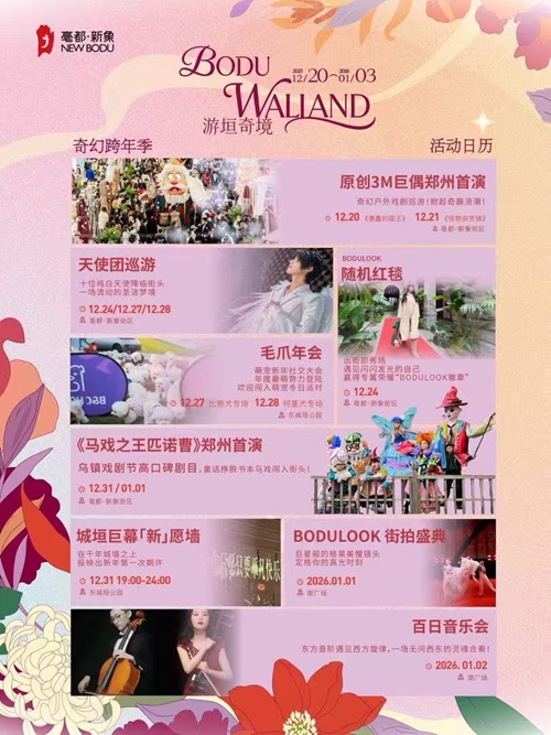 烏鎮戲劇節熱門劇目《馬戲之王匹諾曹》鄭州首演,帶你闖入夢幻童話世界;市民心愿將通過城垣巨幕“新”愿墻映上古老城墻,讓歷史見證美好憧憬;街拍盛典解鎖“巨星待遇”;格萊美級慢鏡頭定格高光瞬間;百日音樂會中西交融的旋律流淌街巷;竹藝美陳織就古今漫游動線,邀全城市民共赴跨越時空的迎新之旅。